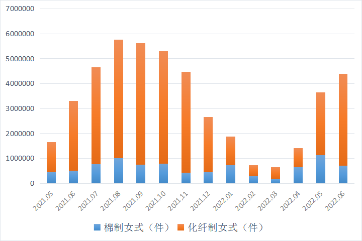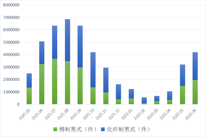 而在6月份的羽绒服出口中,男式羽绒服率先受到了"新疆棉禁令"的影响,棉制的出口数量同比去年下跌了40%。